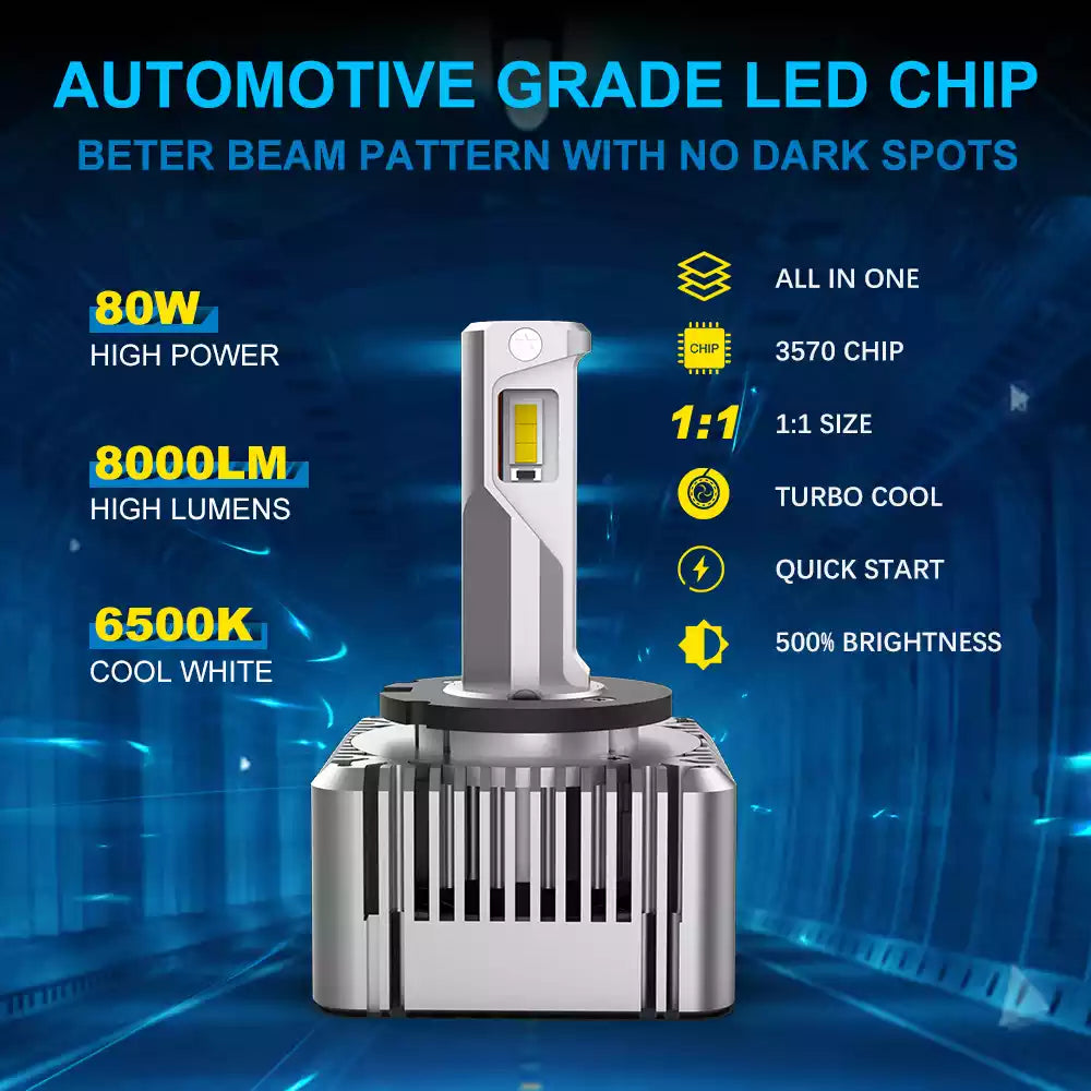 استخدم اللوح الفضي النحيف بسماكة 1.5 ملم والذي يكون أرق بكثير من الشائع في السوق. تقارب شرائح الصمام D1 Plus من كل حجم اللمبات المصنعية لتوفير إضاءة أكثر سطوعًا وتركيزًا من اللمبات الأصلية. سيكون الضوء أكثر تركيزًا ولن يكون هناك وقت للتسخين مع إضاءة بيضاء نقية بزاوية 6500 كلفن، وتشغيل فوري بسطوع كامل.