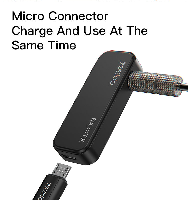انتهى القلق من نفاذ البطارية في منتصف رحلتك. بفضل التصميم العملي ومنفذ الشحن Micro USB، يمكنك الآن توصيل الوصلة بالشاحن والاستمرار في استخدامها في نفس الوقت. استمتع بموسيقاك المفضلة أو مكالماتك بدون أي توقف، مما يجعلها الرفيق المثالي للرحلات الطويلة والمشاوير اليومية، ويضمن لك أن الموسيقى لن تتوقف أبدًا.